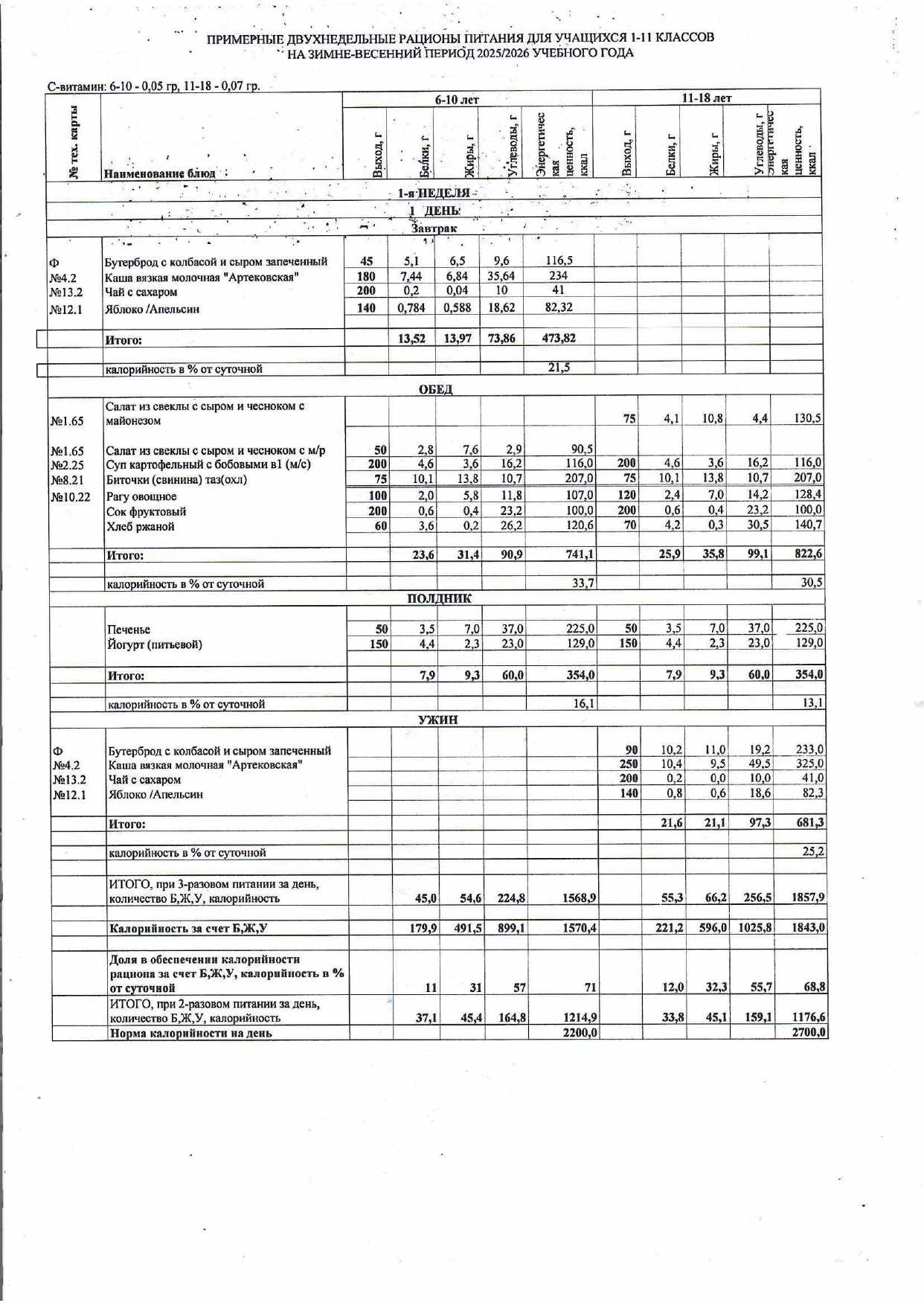 Питание в школе